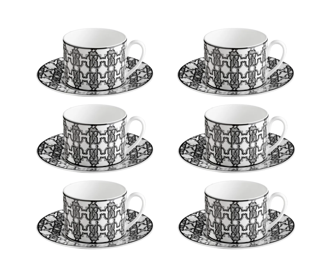 Set  of six Roberto Cavalli Home tea cups from the Monogram Black collection