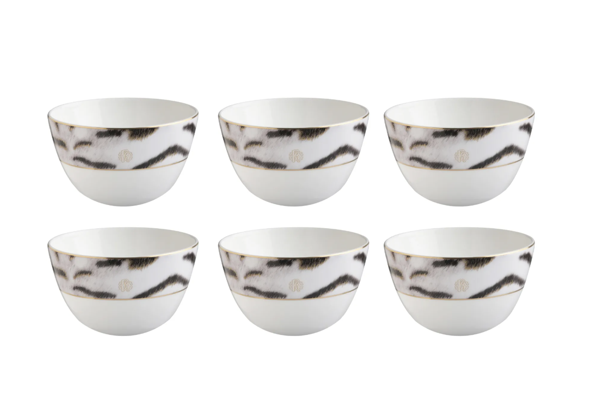 Set set of six Roberto Cavalli Home rice bowls from the Tiger collection.