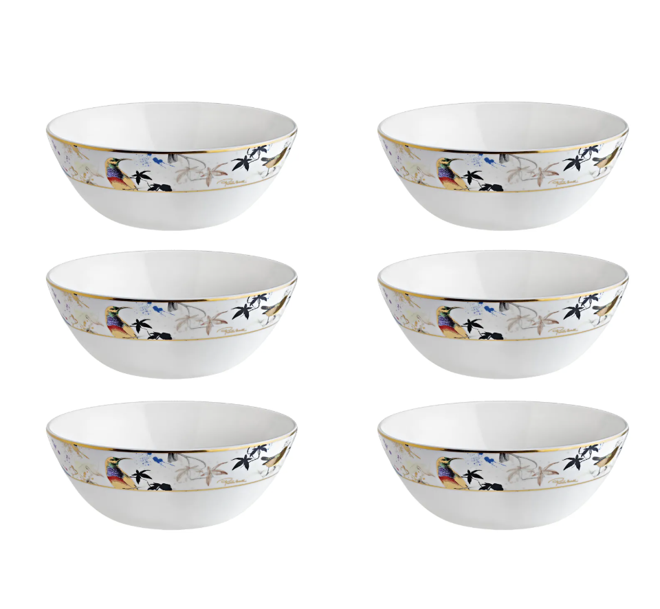 - A set of six Roberto Cavalli Home soup bowls from the Garden's Birds collection. Crafted from high-quality porcelain and decorated with painted bird motifs and elegant gold details, this is a timeless piece of luxurious tableware.