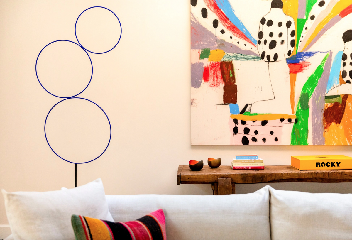 Catellani & SmithThe Sorry Giotto lamp by Catellani & Smith is an expression of Enzo Catellani's fascination with the perfect form of the circle and his desire to create an object as minimally invasive as possible in a space. Three rings of hand-painted copper in an intense blue are suspended from a slender, black stem, creating a dynamic yet harmonious composition. When turned on, the lamp emits a soft, warm light that highlights the contours of the circles and gives the entire piece an almost cartoonish character. The design was honored with a Wallpaper* Design Award as the best floor lamp in the home design category, confirming its timeless and iconic status.