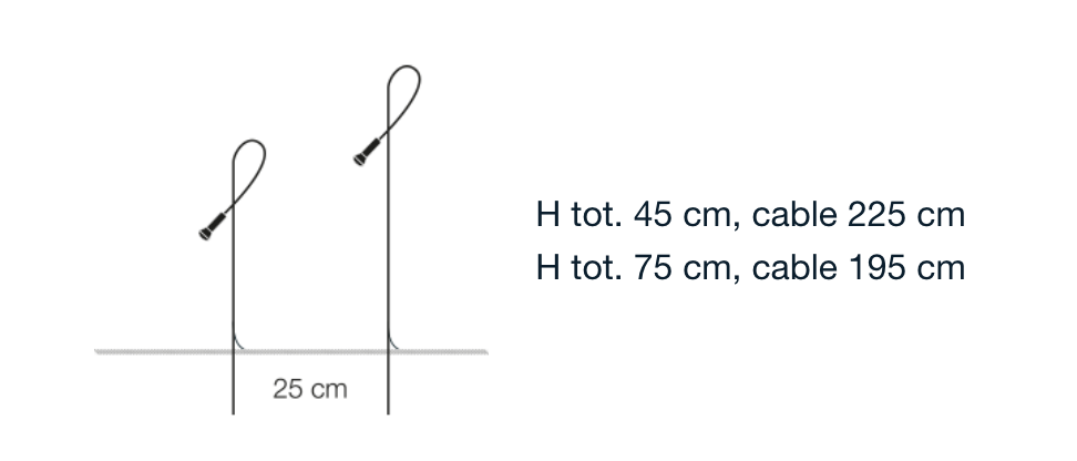 - Total height 45 cm × Cable length 225 cm × 1 G4 LED light point (0.8 W, 2700 K, IP65) - the price shown is for this size. - total height 75 cm × cable length 195 cm × 1 LED G4 light point (0.8 W, 2700 K, IP65).
