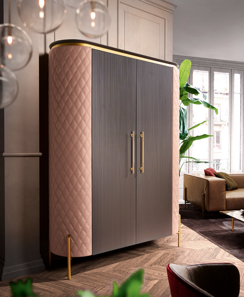 The Brera wardrobe by Former In Italia is a functional piece from a collection designed with modern interiors in mind. The wooden structure is complemented by legs and metal tubing details with an anti-touch finish, giving the entire piece a distinctive character. The two wooden swing doors feature a relief finish in the form of vertical channels. The interior features a hanging rail, and the sides are available in fabric or leather. The final price depends on the chosen finish. Dimensions: 150 × 50 × 204 cm