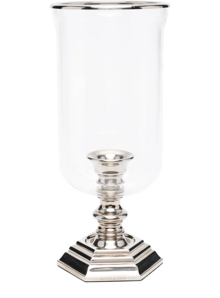 The Ralph Lauren Home Classic Large vintage-inspired lantern is made from mouth-blown crystal and set on a brass base with a shiny silver-plated finish. Dimensions: 61 cm H x 15.2 cm base diameter