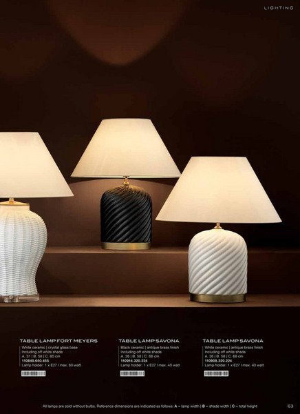 - The Savona lamp by Eichholtz is made of stainless steel and ceramic and finished with a white lampshade.