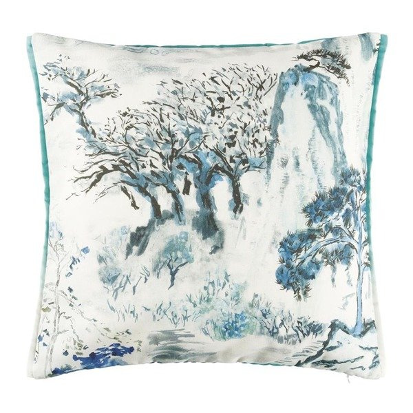 The Jade Temple Cornflower decorative pillow by Designers Guild is made of durable and stain-resistant canvas and finished with a tree pattern. Dimensions: 45 x 45 cm.