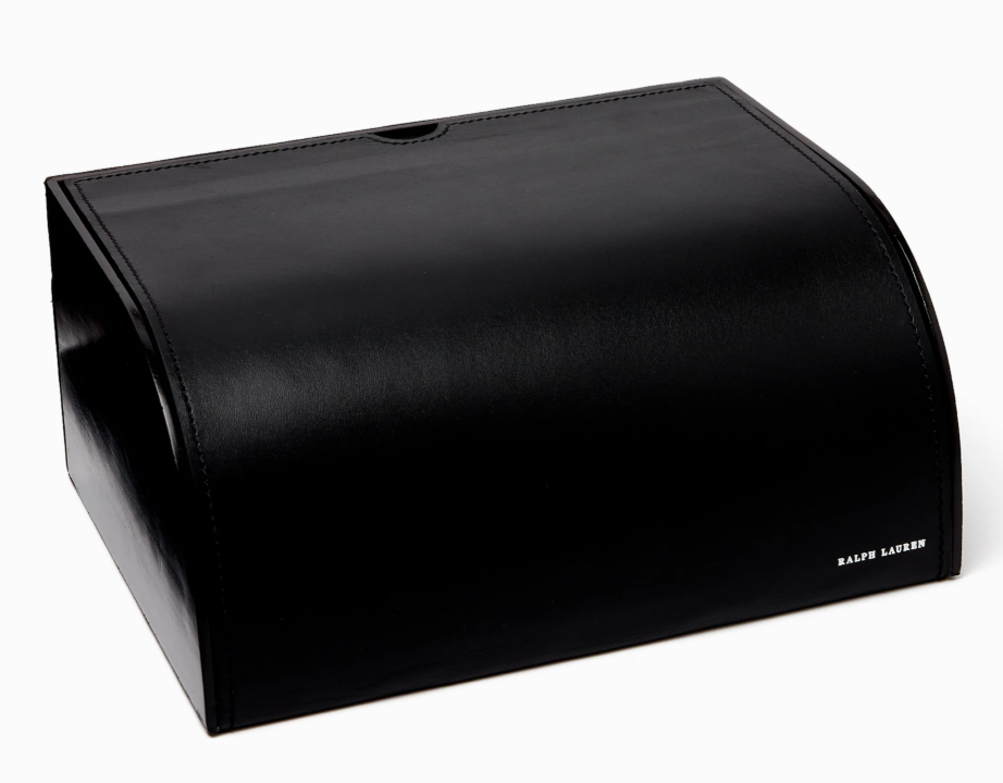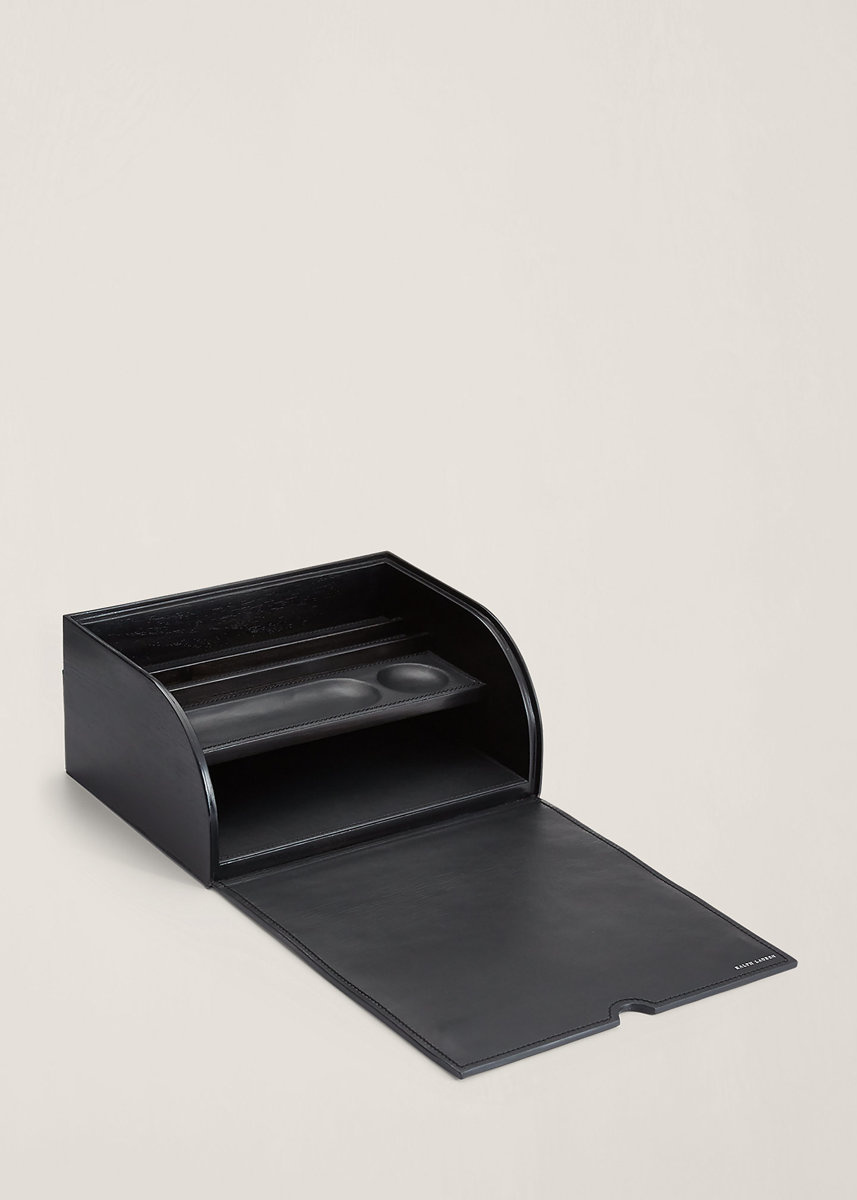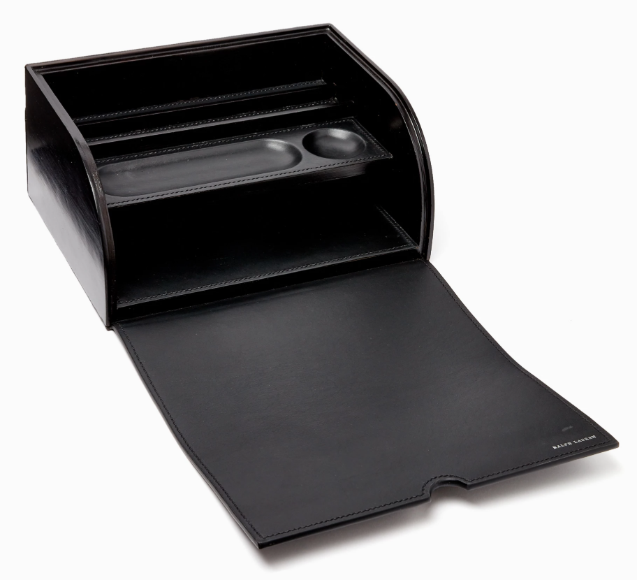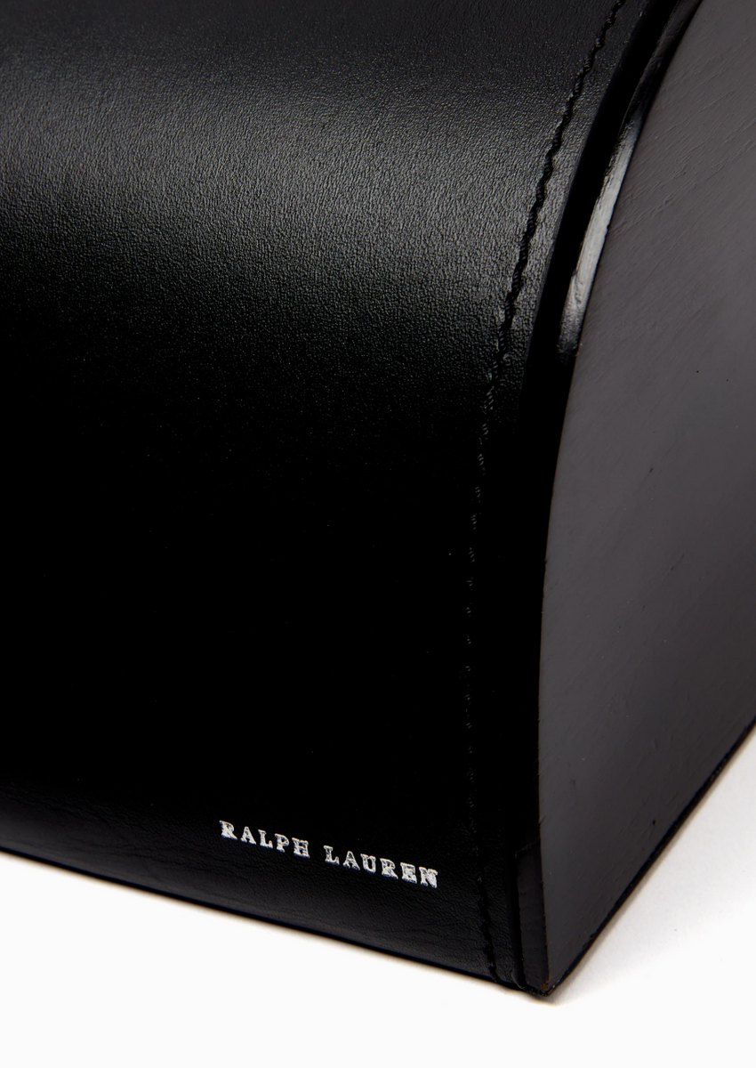 Inspired by Ralph Lauren's fine handbags, this teakwood-and-leather writer's box is the ultimate desk accessory for the modernist who appreciates timeless craftsmanship.