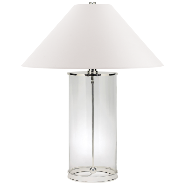• The Modern table lamp by Ralph Lauren Home is made of silver, polished to a high gloss finish. The lamp stem is made of glass.