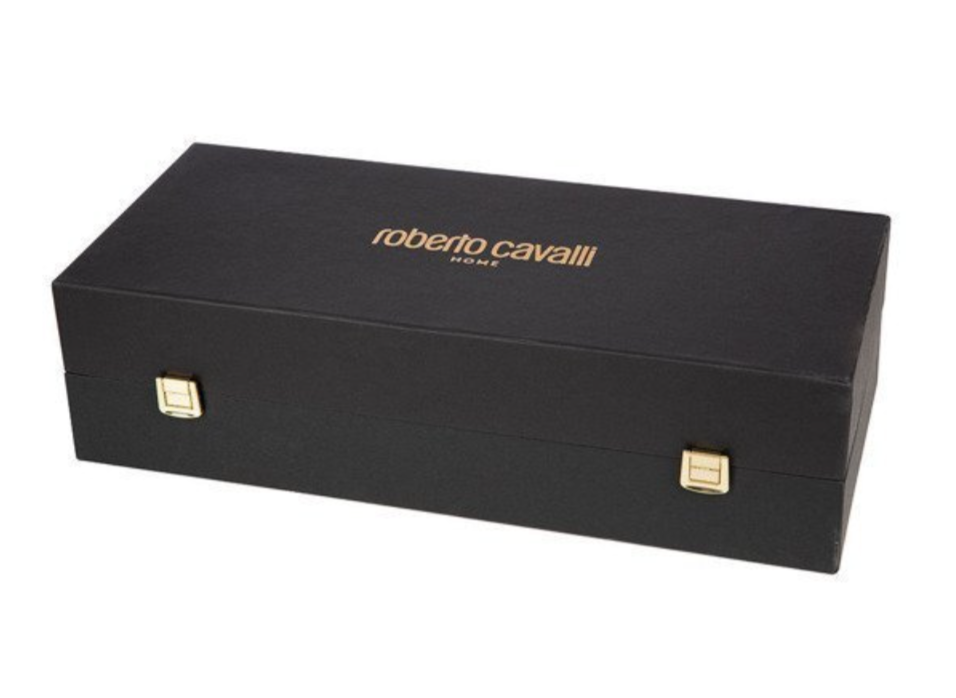 • Set of two coffee cups by Roberto Cavalli Home, from the Camouflage collection in white high quality Bone China porcelain. The cup features a panther design and has been plated in 24 karat gold.