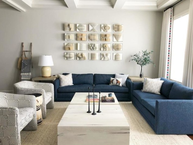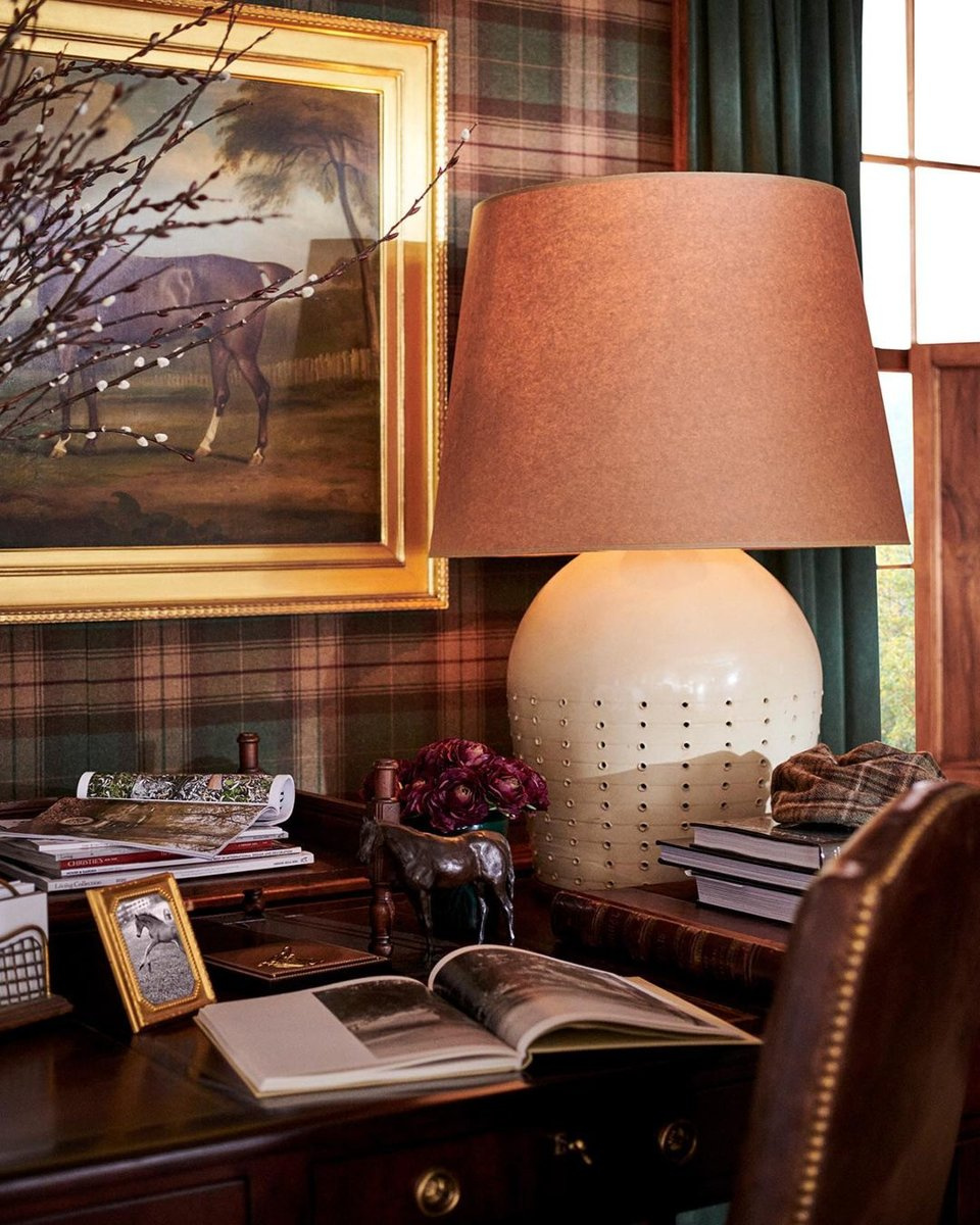 Halifax table lamp by Ralph Lauren Home design is made of ceramic in navy blue color and finished with a bright lampshade. The lamp has a socket for an E 27 bulb.