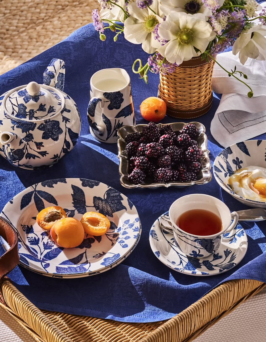 To create our newest tableware collection, Ralph Lauren has partnered with Burleigh, the storied, 160-year-old English pottery maker in a first-ever collaboration that celebrates the best of modern American style and fine English tradition. Inspired by an East Asian block-printed batik fabric, Faded Peony’s dense florals easily mix and match with Ralph Lauren x Burleigh’s Garden Vine and Midnight Sky patterns to create an eclectic and personal combination that is perfect for everyday entertaining. Meticulously hand-finished by Burleigh artisans, each piece is a one-of-a-kind collectible, reflecting both companies’ commitment to quality and craftsmanship.