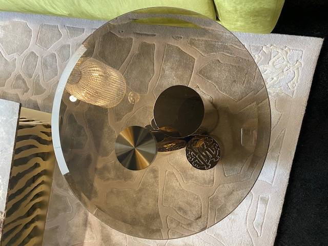 - Antigua table by Roberto Cavalli Home Interiors is made of metal and finished with glass.