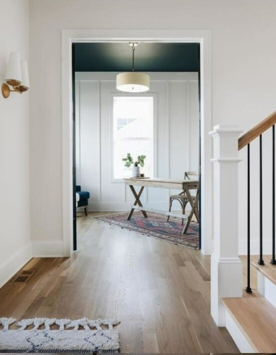- Reed Thomas O'Brien pendant lamp by Visyal Comfort in brushed antique brass with a linen lampshade. The lamp has a socket for an E 27 bulb.
