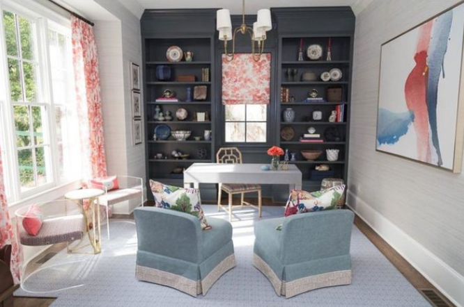 The Vendome Small chandelier by Thomas O'Brien from Visual Comfort is brown with linen shades. It has an E14 bulb socket.