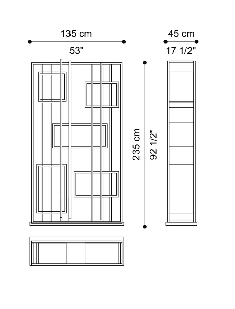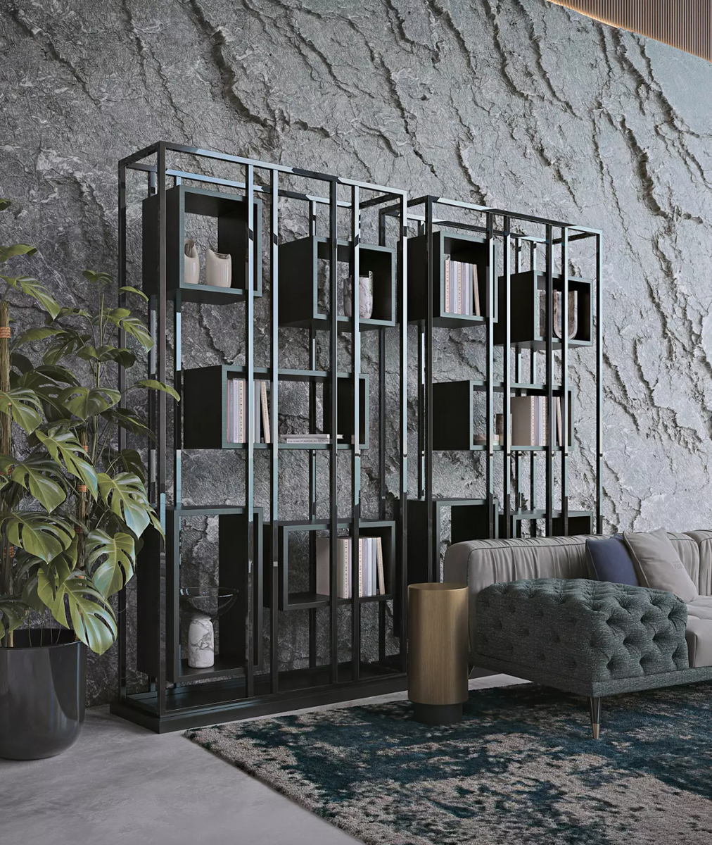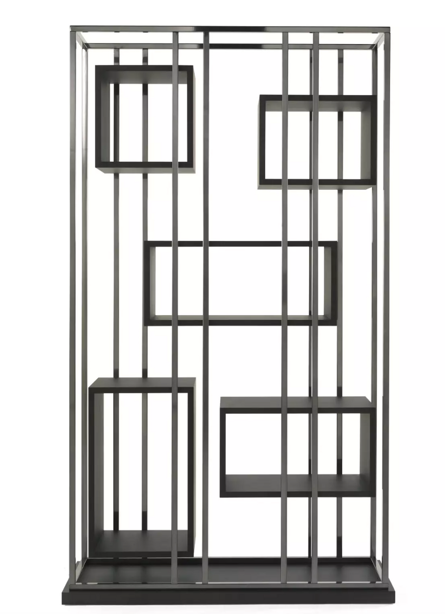 - The Mackintosh bookcase by Gianfranco Ferré Home features a metal frame in brushed brass or black chrome. The base is made of multi-layered wood with a veneer finish. The squares are made of multi-layered wood. Dimensions: 135 x 45 x 235 cm