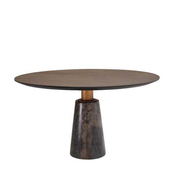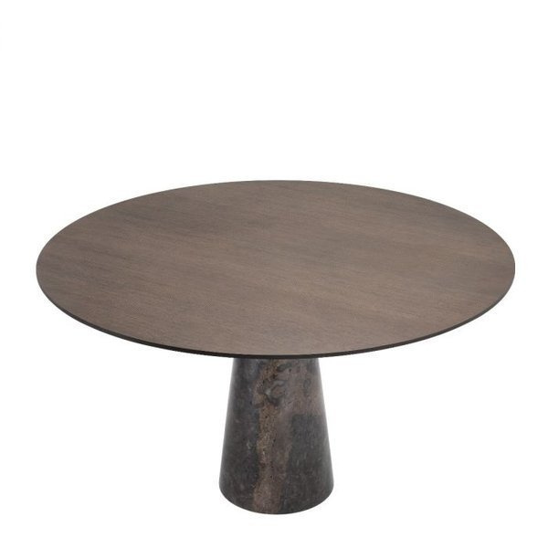 The Genova table by Eichholtz is made of oak veneer and finished in gray marble. Dimensions: ø 132 x H. 76 cm.