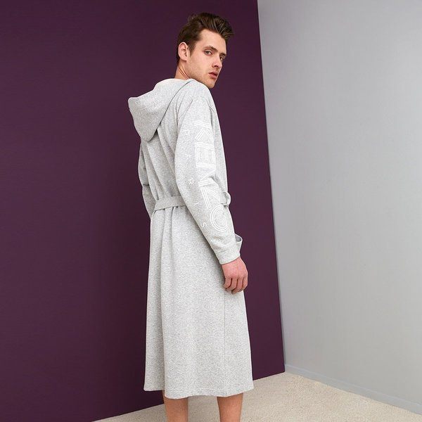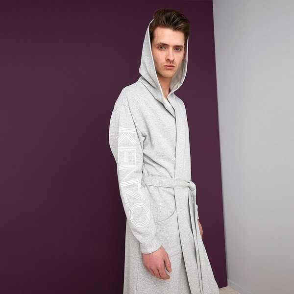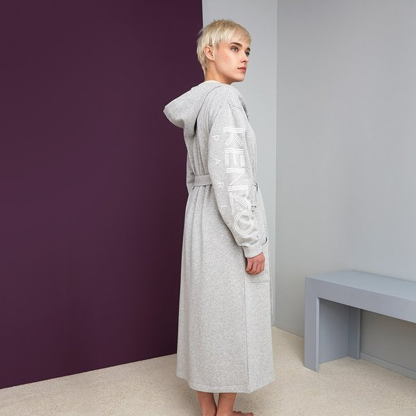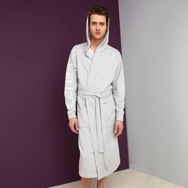 - The bathrobe by Kenzo, from the Logo collection, is made of 67% cotton, 33% polyester, 300 gr / m² and finished in light gray color. The bathrobe features a hood and the Kenzo logo in white.