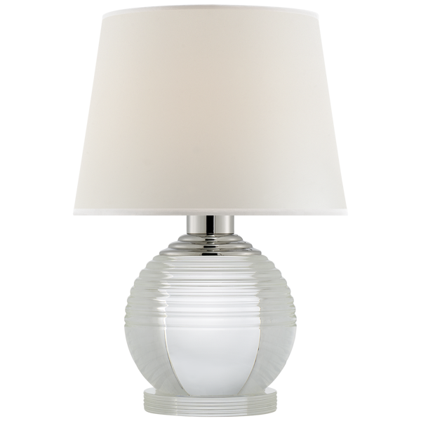 The Winston table lamp by Ralph Lauren Home is made of crystal and finished with a bright lampshade. The lamp has a socket for an E 27 bulb.
