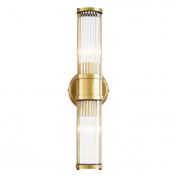 - Claridges wall lamp by Eichholtz is made of antique brass and finished with transparent glass.