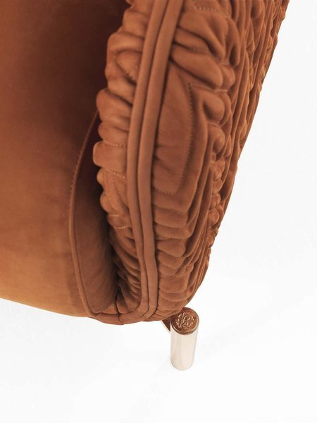 Roberto Cavalli HomeThe Clifton three-seater sofa by Roberto Cavalli Home features solid poplar and fir wood construction from Masonite. Upholstery in fabric or leather from the collection. The leather version is also available with ‘Spiga’ quilting inside and outside the structure. Iron frame under the seat with elastic band to guarantee resilience. Seat in expansive polyurethane foam of variable thickness and high density. Upholstery in fabric or leather from the collection (silk excluded). Back cushions in goose down. Upholstery in fabric or leather from the collection. Laser-cut metal legs in glossy or brushed finishes from the collection. Brass plates with RC monogram on front legs. Price quoted is in Category A fabric. Dimensions: L 283 D 100 H 76 cm