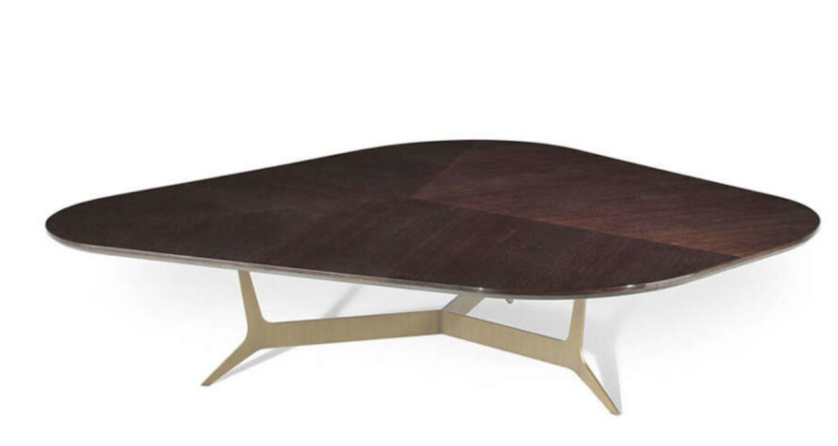 - The Cooper coffee table by Roberto Cavalli Home Interiors is made with a gold-colored metal base and a black marble finish.
