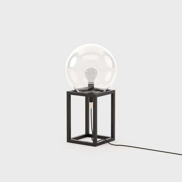 • Jones table lamp by Laskasas design is made of iron in black color and transparent glass.