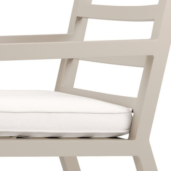 • The Delta garden chair by Eichholtz is made with a sand-colored aluminum frame and finished with sunbrella canvas fabric.