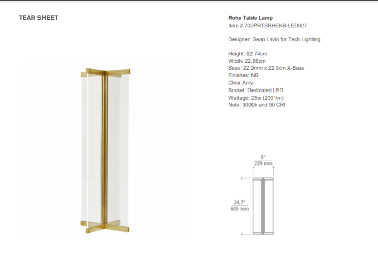 • The Rohe table lamp by Sean Lavin from Visual Comfort is a brass-colored LED lamp. It mimics the classic structure of architectural beauty. It is equipped with a rotary dimmer on a 1.8-meter cable.