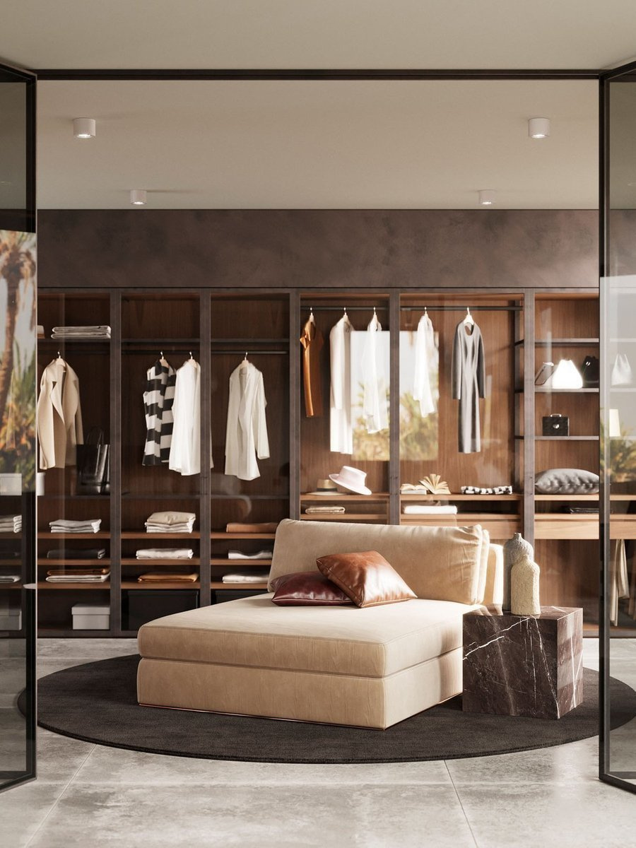 - The Ronny chaise longue by Laskasas is made of Vienna Beige fabric and finished with copper stainless steel.