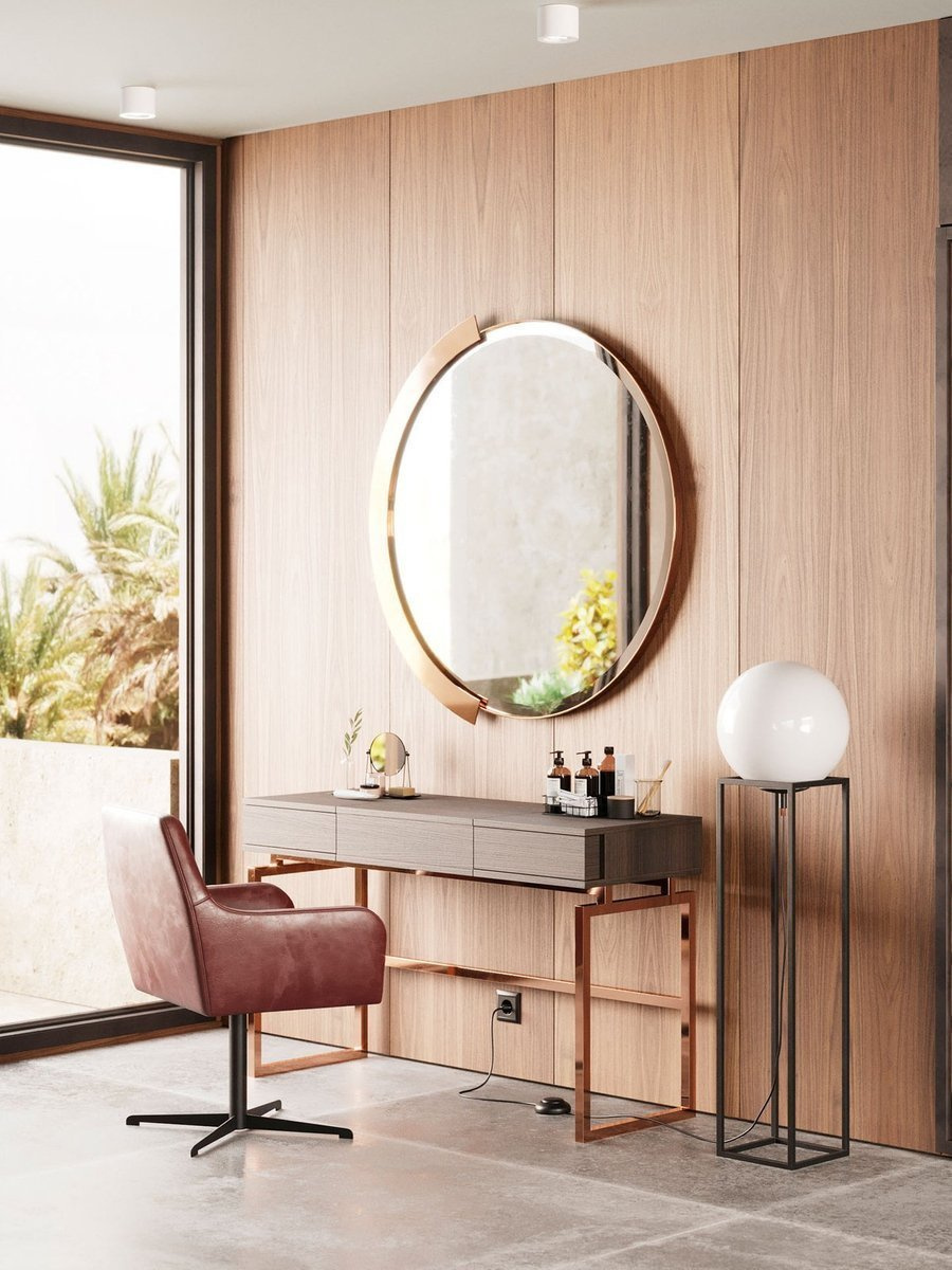 Laskasas Phill mirror is finished in stainless steel. Dimensions: 125.5 x 4 x 131 cm.