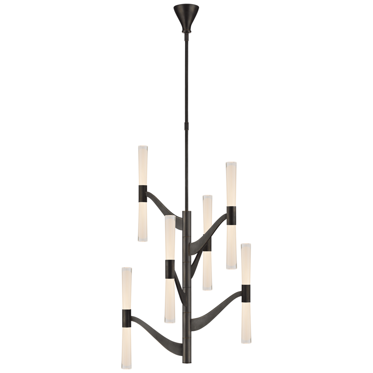 The Brenta Medium chandelier by Aerin is made of bronze and finished with transparent glass. The lamp has an LED. Dimensions: 181.6 x 66 x 12.7 cm.