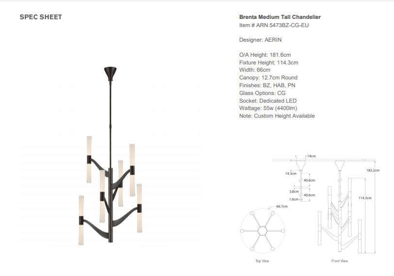 • The Brenta Medium chandelier by Aerin is made of bronze and finished with transparent glass. The lamp has an LED.