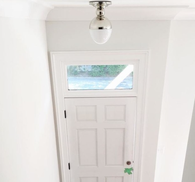 The Clark plafond by Thomas O'Brien was made of polished nickel and finished with white glass. The lamp has a socket for an E 27 bulb. Dimensions: 32.4 x 19 x 19 cm.