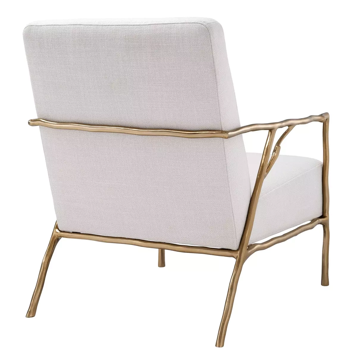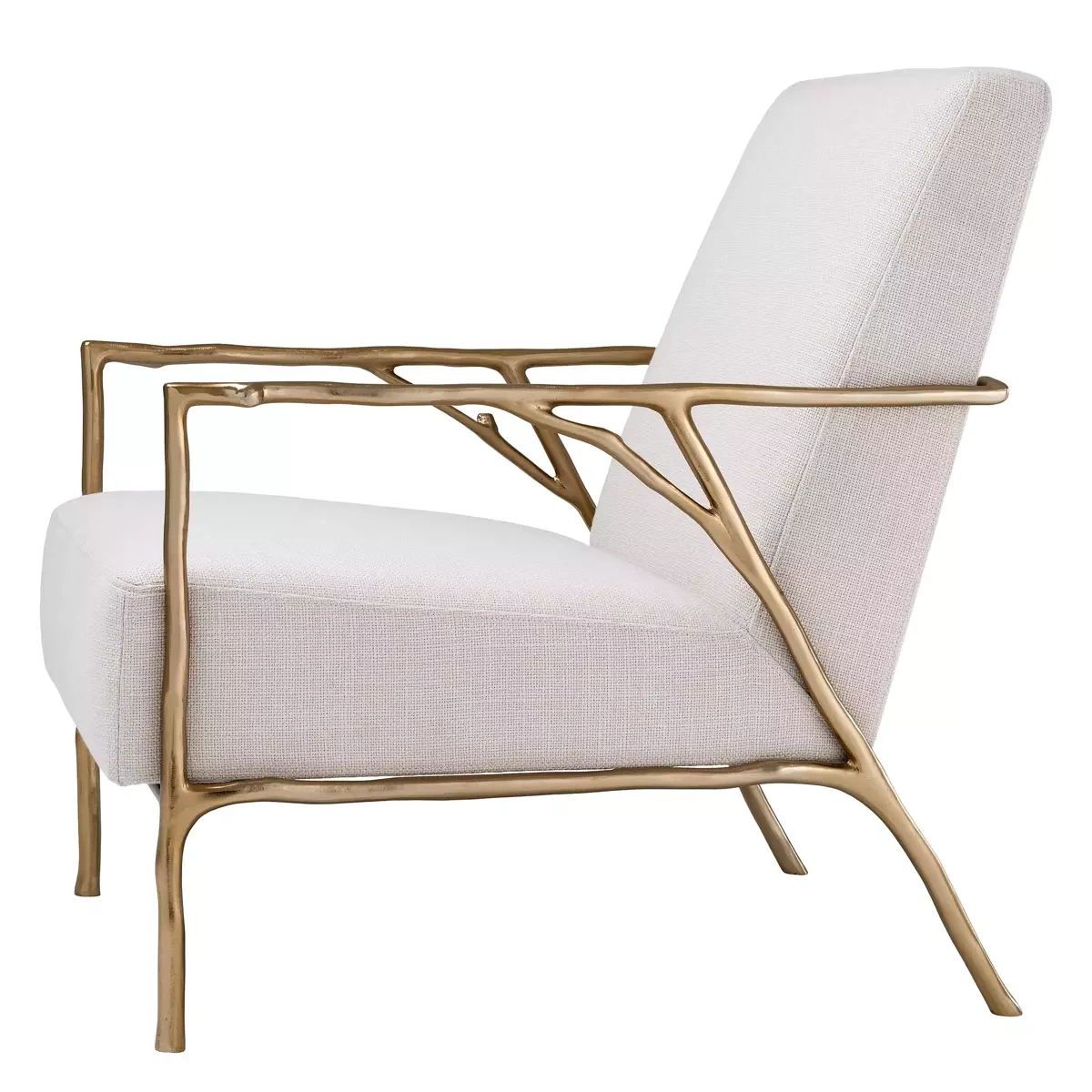- Antico armchair by Eichholtz is made of mahogany wood, upholstery in panama natural color and finished with a gold-colored base.