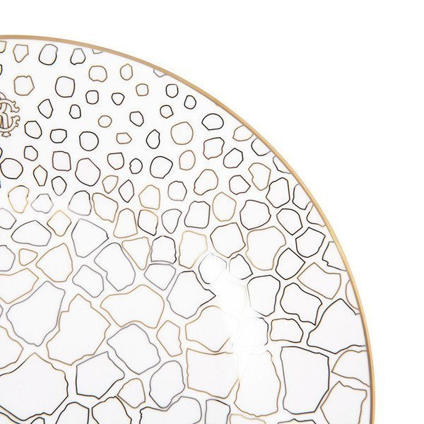 - The dinner plate was made of high quality bone china. It is distinguished by an inner shell, covered with gold and platinum, reminiscent of giraffe skin, and a monogram embossed inside Roberto Cavalli.