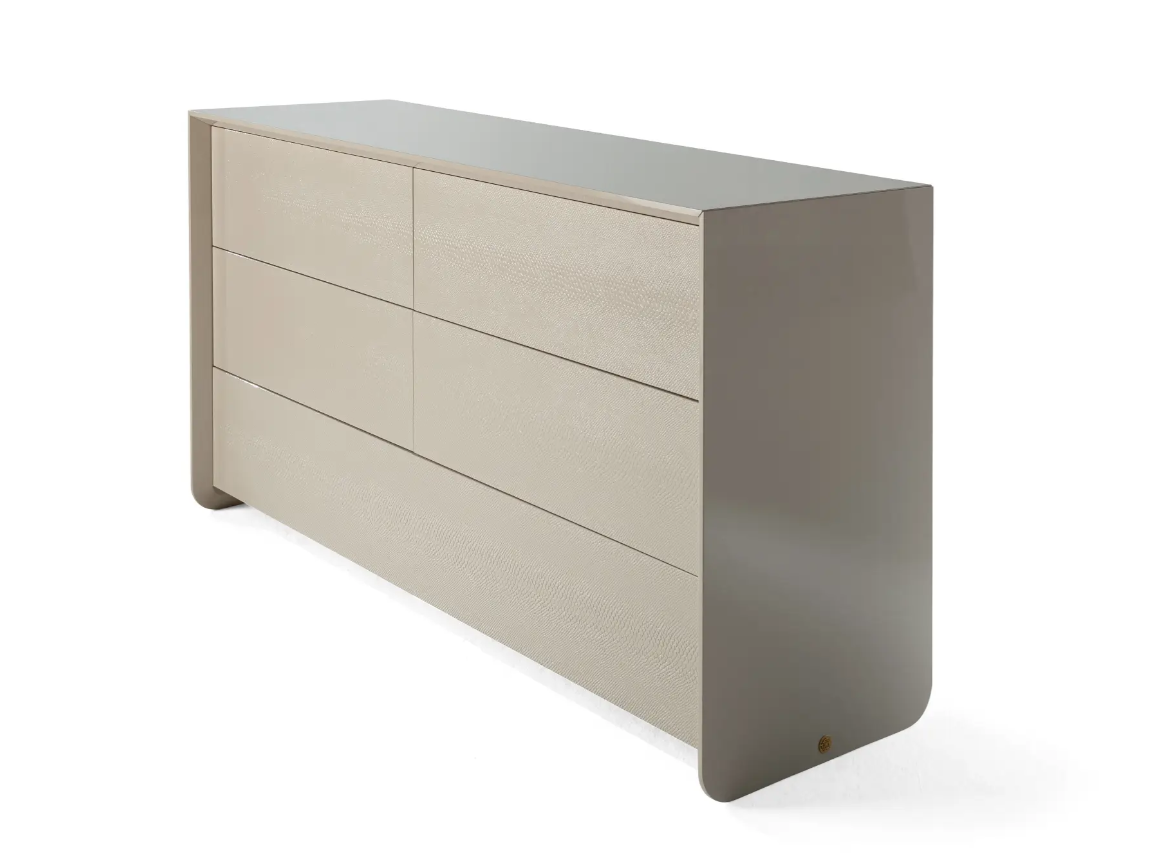 - Morne chest of drawers by Roberto Cavalli Home Interiors with MDF construction veneered in glossy lacquer on the outside and matt on the inside. Drawer front with Python 3D patinated bronze finish.