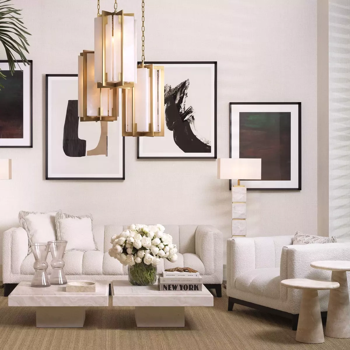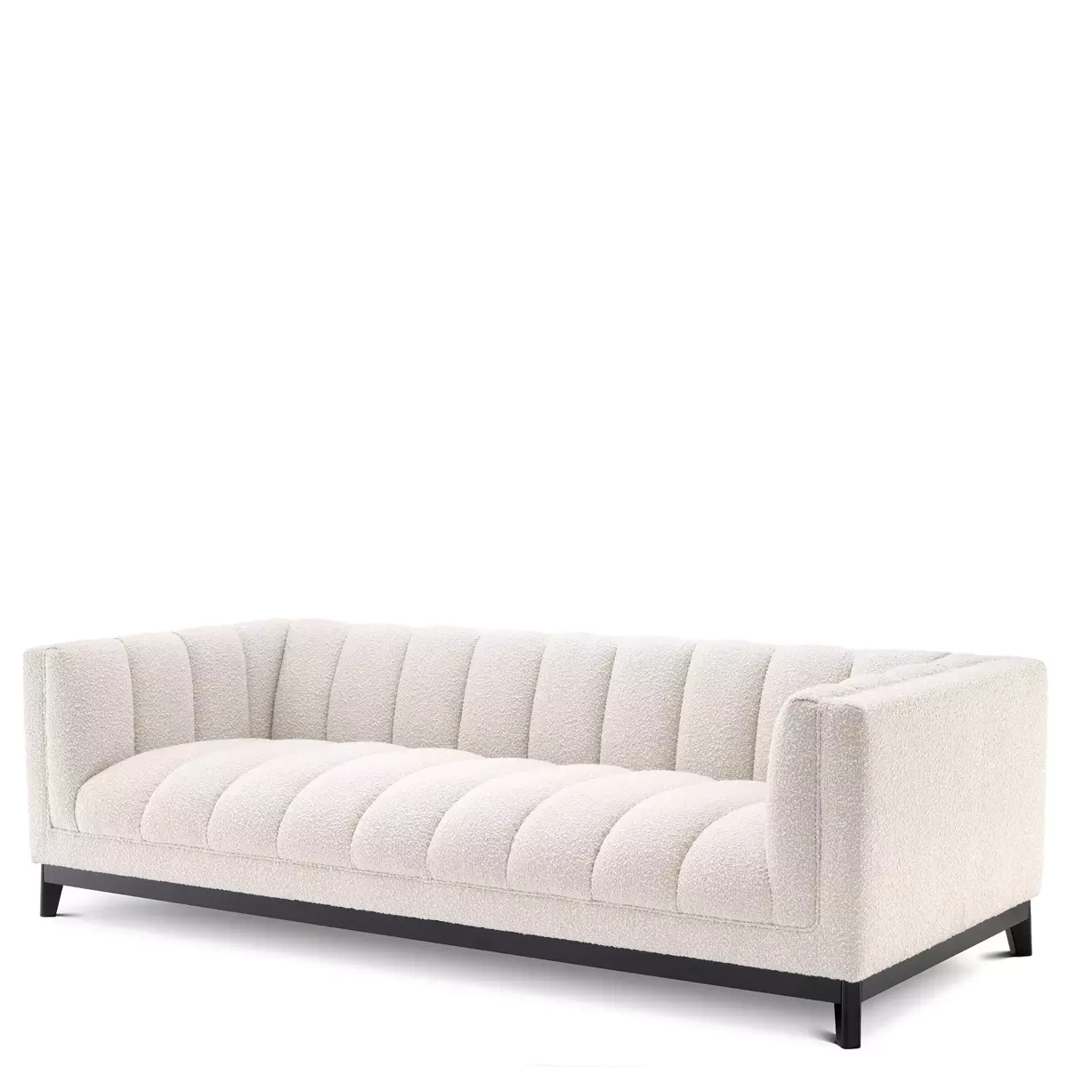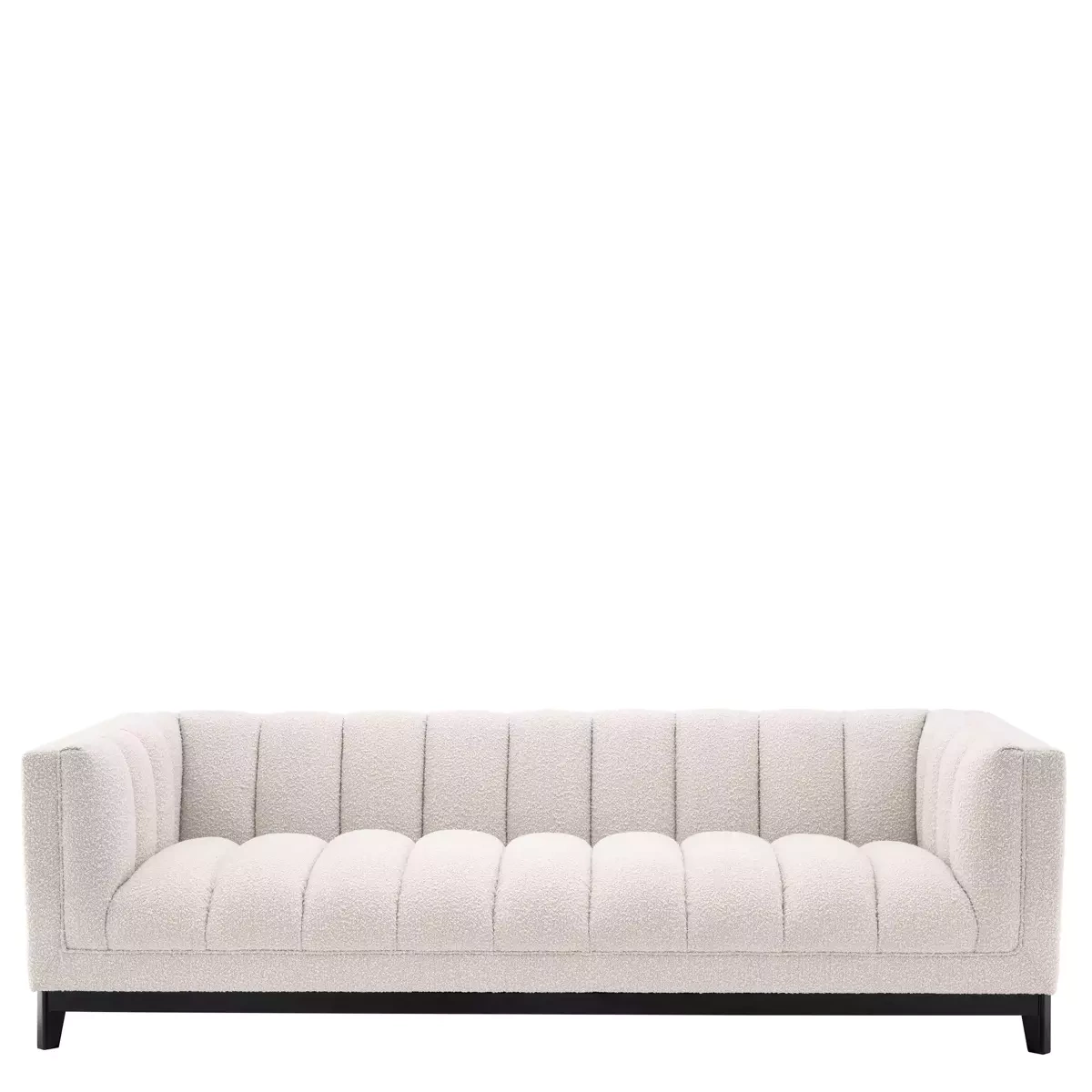 - The Ditmar sofa by Eichholtz has black legs and is finished in Bouclé cream fabric.