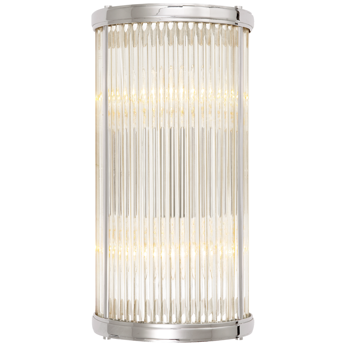 Kinkiet Allen Small firmy Ralph Lauren Home został wykonany z polerowanego niklu oraz białego szkła. Lampa posiada gniazdo na żarówkę E 27. Wymiary: 30,5 x 15,2 x 12,7 cm.