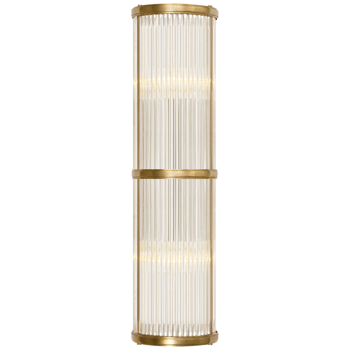 Kinkiet Allen Medium firmy Ralph Lauren Home został wykonany z mosiądzu oraz białego szkła. Lampa posiada gniazdo na żarówkę E 27. Wymiary: 47 x 15,2 x 12,7 cm.