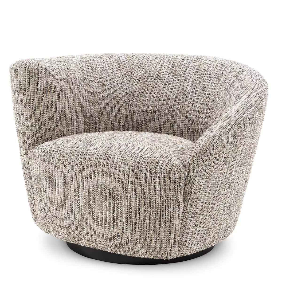 - Fotel Colin Left firmy Eichholtz posiada czarną podstawę oraz został wykończony tkaniną Mademoiselle beige. Fotel posiada obrotową podstawę.