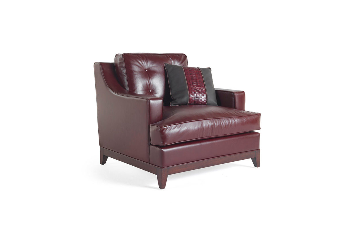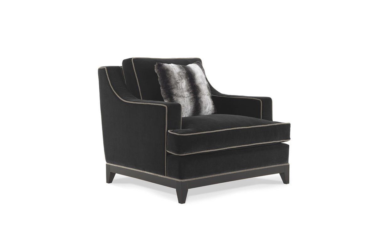 Fotel Clark firmy Gianfranco Ferré Home. Konstrukcja z drewna bukowego i pianki. Podstawa wykończona czarnym lakierem. Nie zawiera kompletu poduszek dekoracyjnych. Podana cena jest ceną za mebel w tkaninie z kategorii A. Wymiary: 104 x 95 x 84 cm.