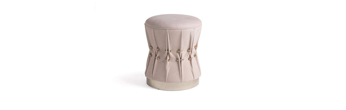 • Puf Inanda firmy Roberto Cavalli Home Interiors. Struktura z drewna topoli i pianki. Metalowe detale dostępne we wszystkich wykończeniach z kolekcji. Drewniana podstawa lakierowana na złoto.