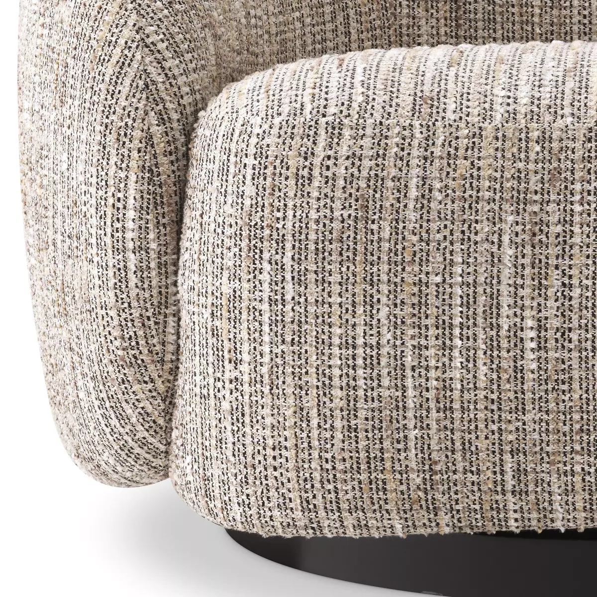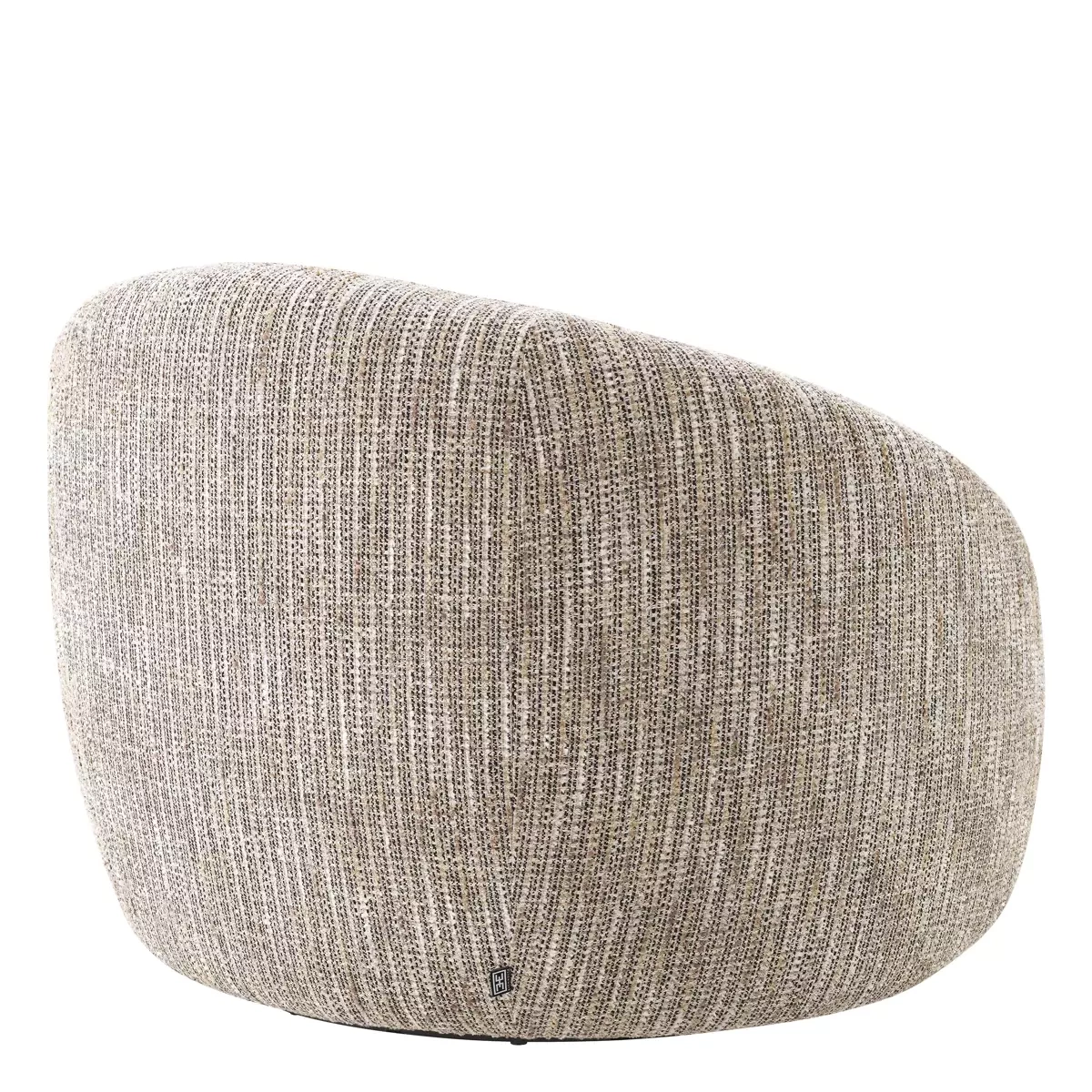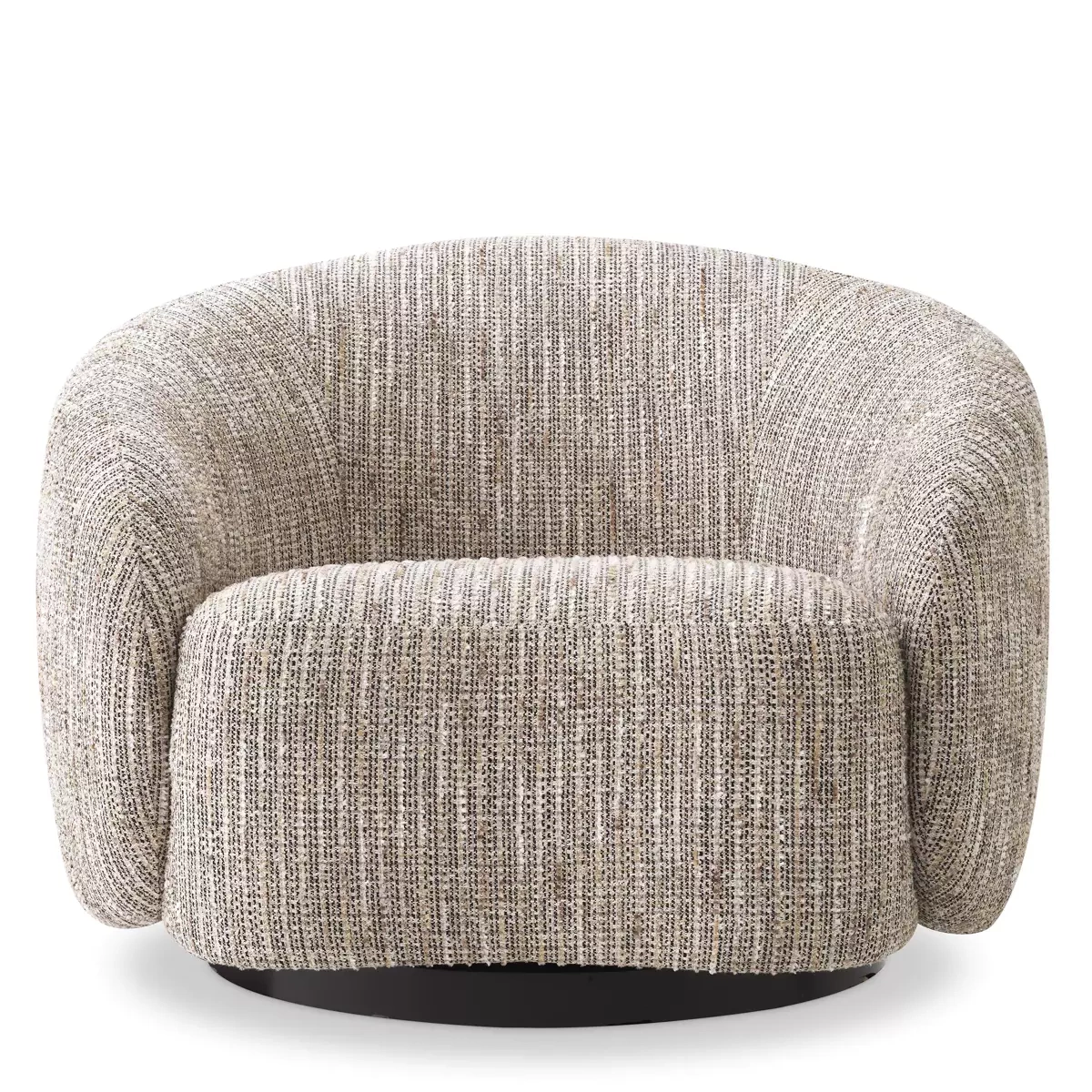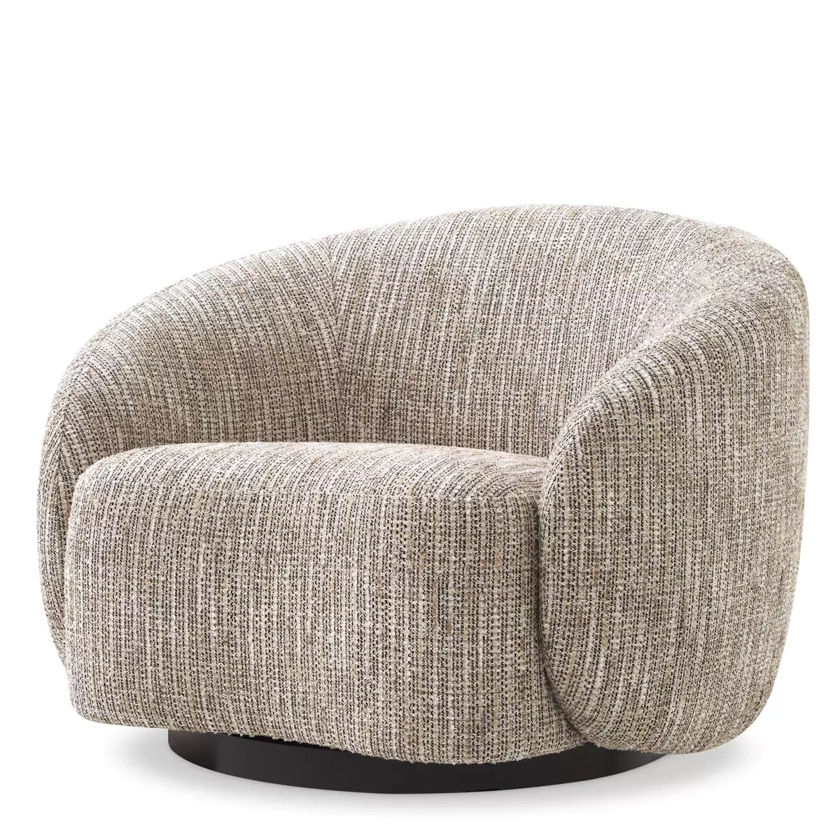 - Fotel Amore firmy Eichholtz został wykonany tkaniną Mademoiselle beige oraz wykończony obrotową podstawa w czarnym kolorze.