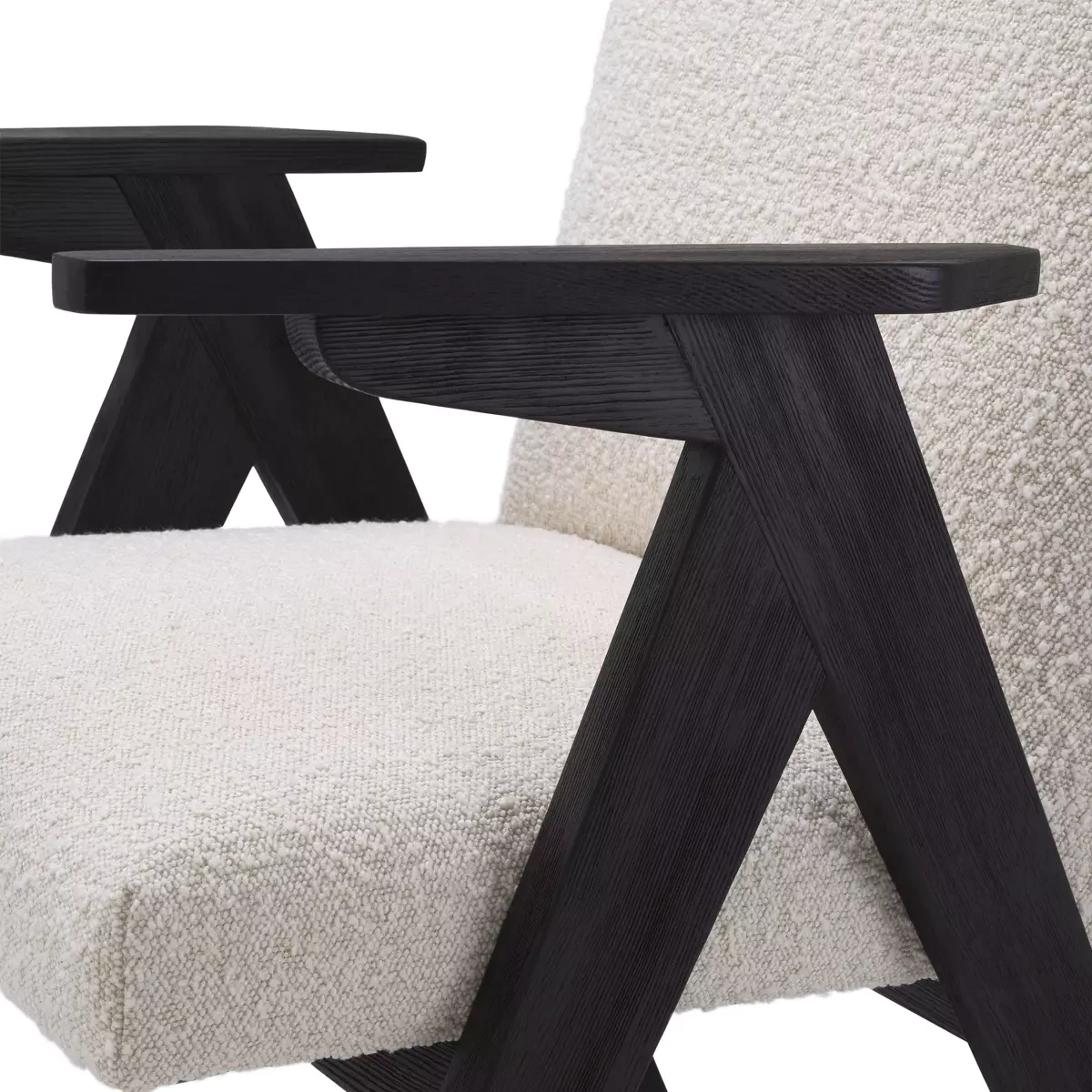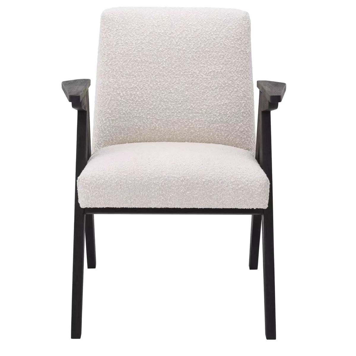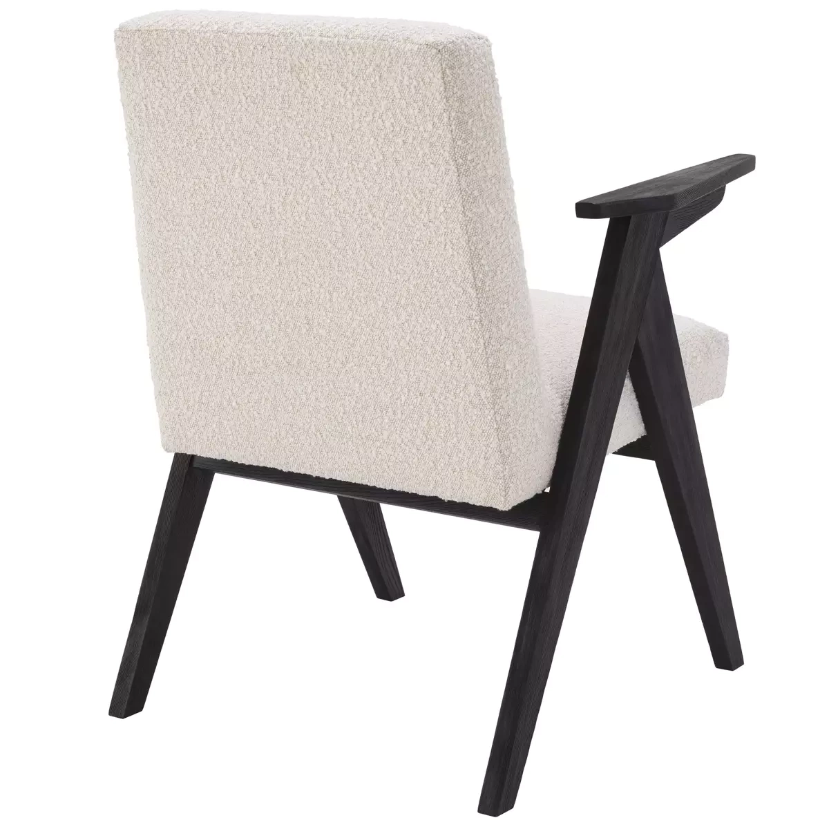 - Krzesło Bobo firmy Eichholtz zostało wykonane w tkaninie Krem Bouclé oraz wykończone czarnymi nogami.