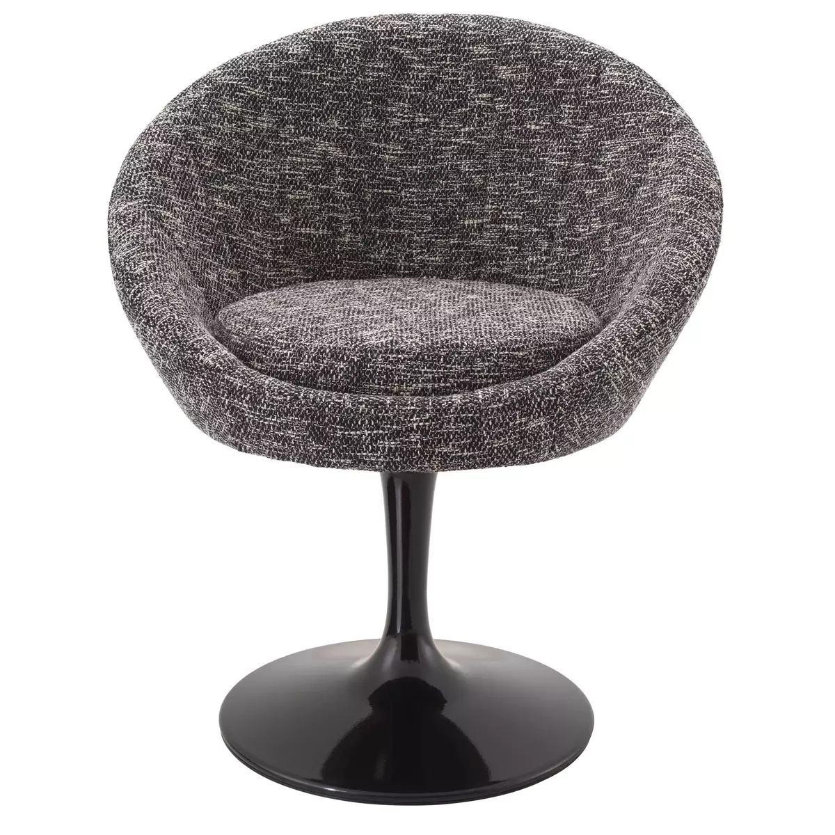 Krzesło O'Neill firmy Eichholtz zostało wykonane tkaniną Cambon black oraz wykończone podstawą obrotową w czarnym kolorze. Wymiary: A. 67 | B. 57 | C. 78,5 | D. 45 | E. 49,5 cm.