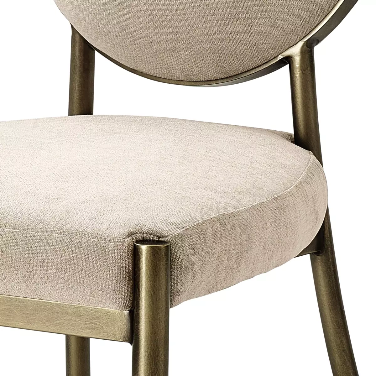 Krzesło Scribe firmy Eichholtz zostało wykonane z mosiądzu oraz wykończone jasną tapicerką. Wymiary: A. 57,5 | B. 60 | C. 91 | D. 45 | E. 46 cm.