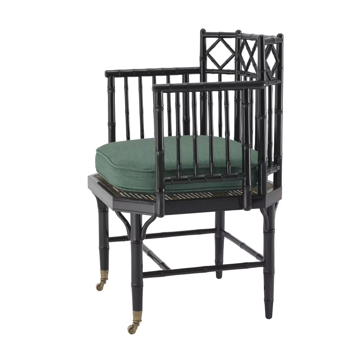 - Krzesło Xavier marki Eichholtz zostało wykonane ze sztucznego bambusa, trzciny oraz wykończone antycznym mosiądzem.
