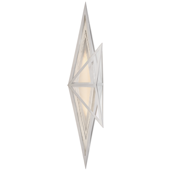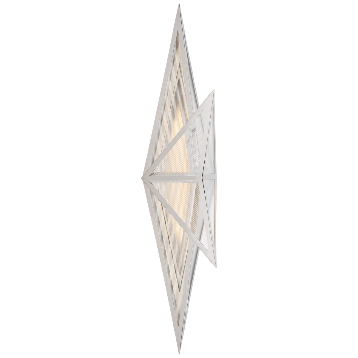 Kinkiet Ori projektu Kelly Wearstler został wykonany z niklu oraz wykończony szkłem transparentnym. Lampa posiada diodę LED.
