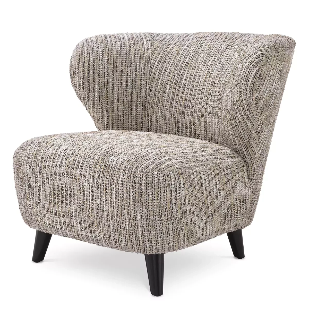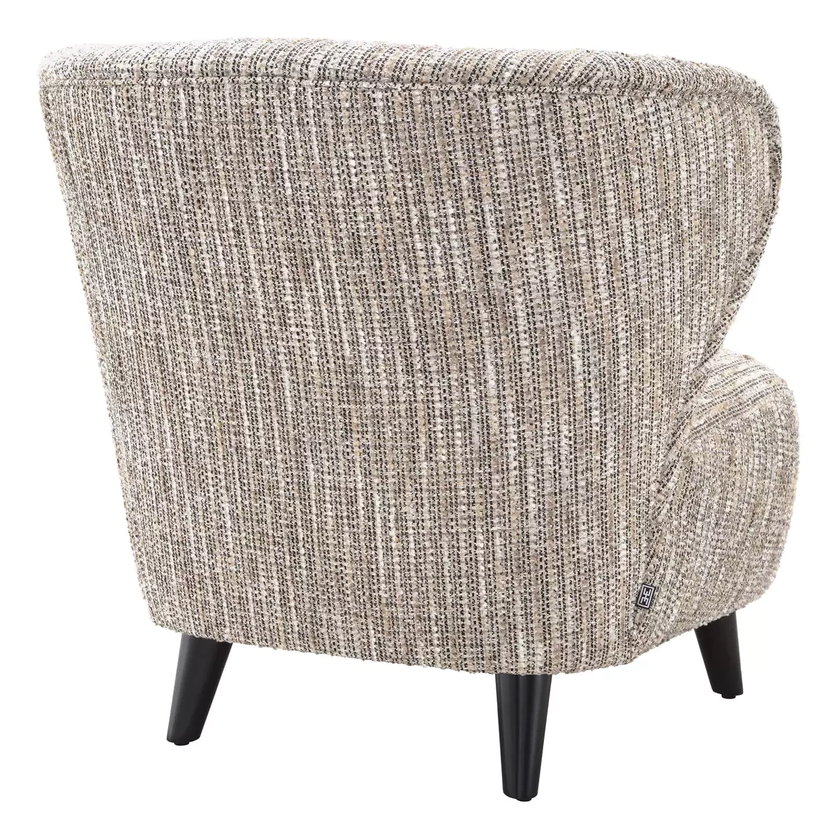 - Fotel Hydra firmy Eichholtz posiada czarną podstawę oraz został wykończony tkaniną Mademoiselle beige.