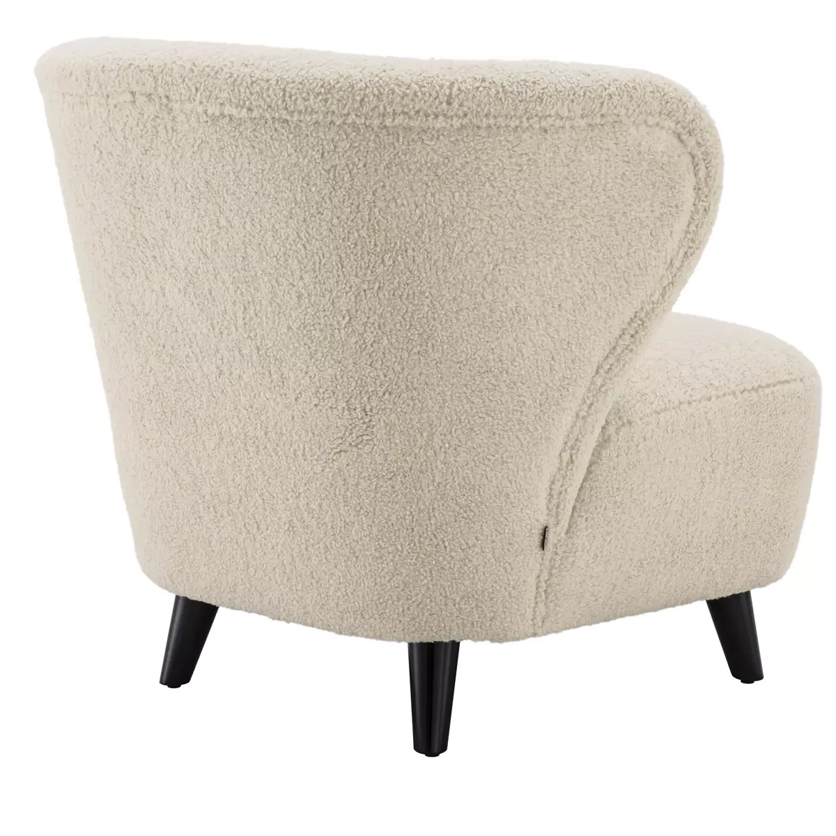 Fotel Hydra firmy Eichholtz posiada czarną podstawę oraz został wykończony tkaniną Brisbane cream. Wymiary: A. 75 | B. 82 | C. 73 | D. 57 | E. 43,5 cm.