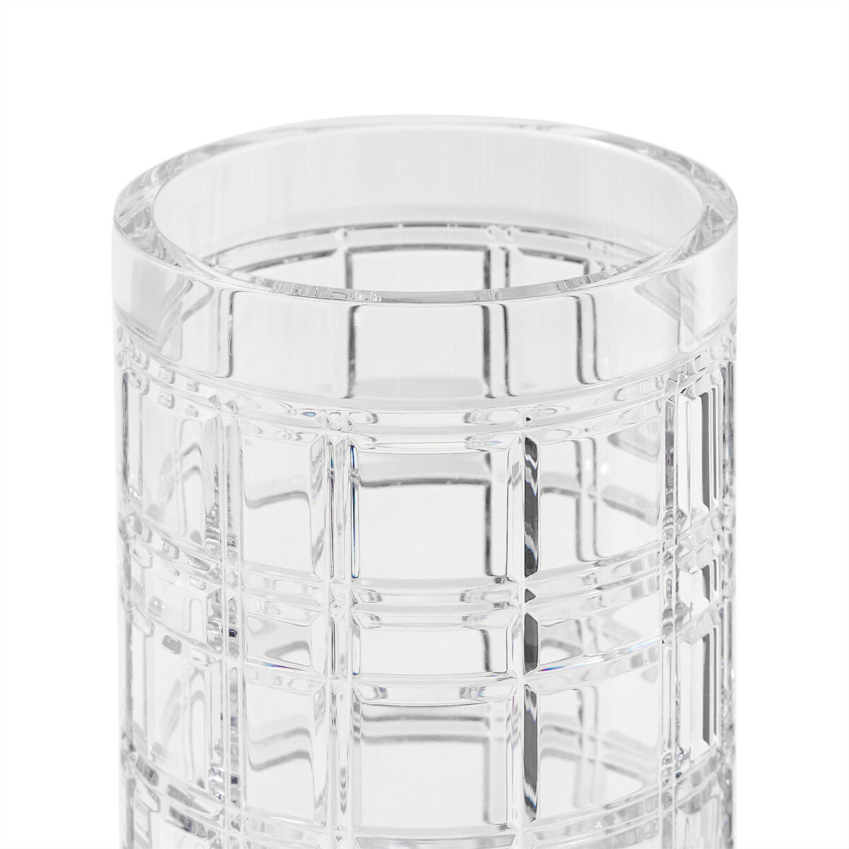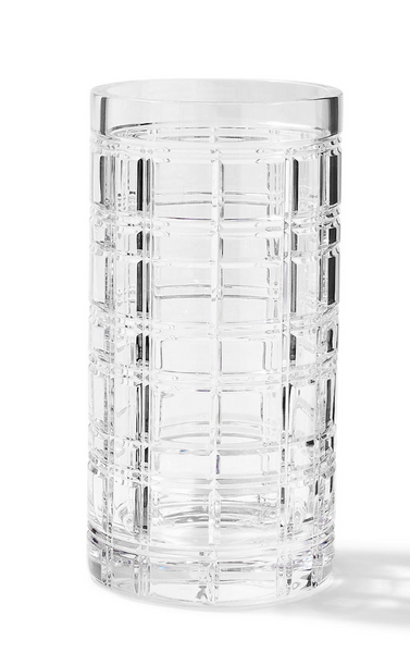 Wazon Medium marki Ralph Lauren Home, z kolekcji Hudson to elegancki element dekoracyjny inspirowany kultowym wzorem tartanowym, będącym znakiem rozpoznawczym marki. Wykonany z wysokiej jakości szkła kryształowego o wyjątkowej przejrzystości, charakteryzuje się wyczuwalną wagą oraz doskonałym załamaniem światła. Geometryczna struktura nadaje mu wyrafinowany, ponadczasowy charakter, dzięki czemu doskonale sprawdzi się zarówno jako samodzielna dekoracja, jak i w towarzystwie kwiatów. Wymiary: średnica 15 x wys. 28 cm